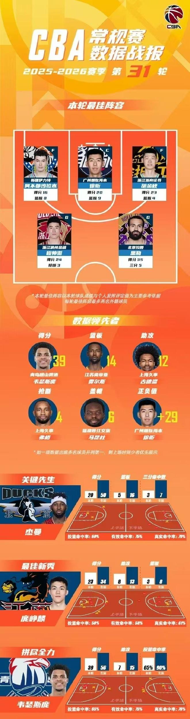 常规赛第31轮最佳阵容: