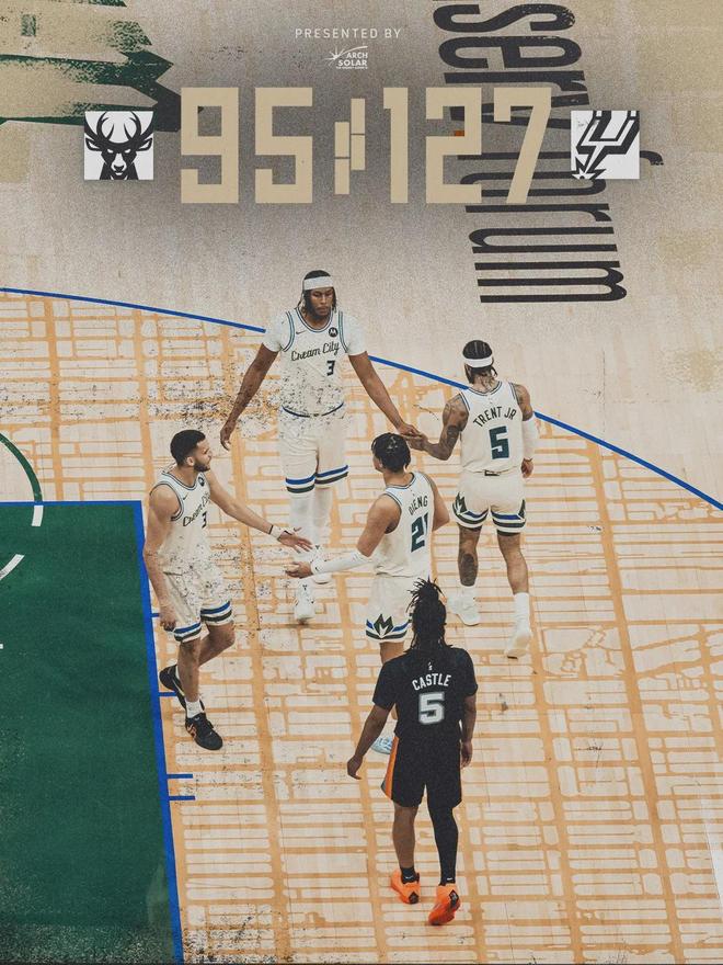 北京时间3月29日,NBA常规赛:雄鹿主场95-127不敌马刺。雄鹿惨遭3连败,雄鹿这三场一共输了96分:输给快船33分,输给开拓者31分,输给马刺32分。雄鹿正式无缘附加赛,里弗斯连续七年率队打进季后赛的纪录正式终结。
