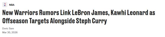 《纽约邮报》记者罗林上月报道称,詹姆斯与勇士之间“确实存在一定程度的相互兴趣”。