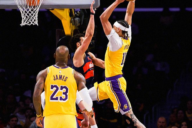 全员发挥下,湖人队半场将分差扩大至20+。不过在这之后,湖人队明显有些松懈,攻防强度明显下降,分差被不断蚕食。不过总的来说,整体趋势根本无法改变。一是两队的差距确实不小,二是奇才队那边也不想赢。全场比赛,詹姆斯狂砍21分10篮板12助攻的三双数据,继续刷新最老三双纪录!而里夫斯也有19分9助攻,在他二人的策动之下,艾顿12分、肯纳德19分,而海斯8投全中得到了19分7篮板2封盖。海斯的表现,一度让人忘记了艾顿的存在。但有一人,无法忘记,他就是湖人队前内线核心安东尼·戴维斯。