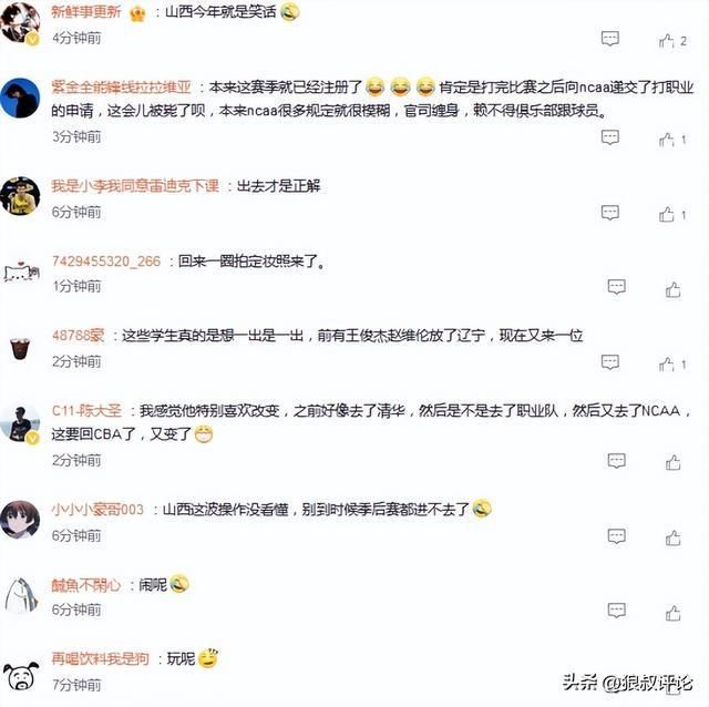 有球迷评论说道:我感觉他特别喜欢改变,之前好像去了清华,然后是不是去了职业队,然后又去了NCAA,这要回CBA了,又变了。