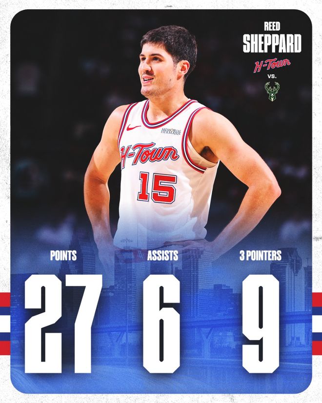 谢泼德最近的两场比赛拿到47分8助攻9篮板13个三分(21中13的三分球),本赛季谢泼德场均13.2分3.4助攻2.9篮板1.47抢断0.68盖帽。