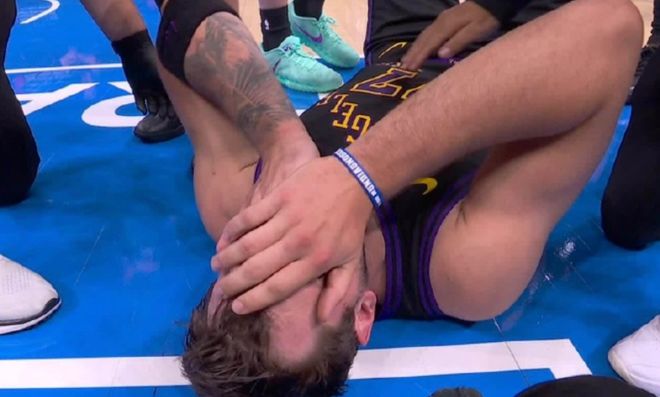 在第三节的一次持球进攻中,东契奇突然在没有对抗的情况下受伤,他捂住了自己的左大腿后侧,表情痛苦,直接倒地。随后,东契奇无力坚持比赛,只能直接回到了更衣室接受检查和治疗。