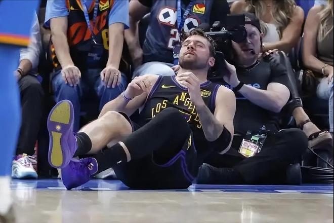 今天比赛的第三节,东契奇在一次突破时发力不对劲,撞到杰伦威廉姆斯身上,随后连续单脚跳,右手摸着大腿后侧,疑似是腿筋拉伤。随后东契奇长时间倒地不起,表情非常凝重,双手捂着头,非常沮丧。随后湖人叫暂停,东契奇被队友慢慢拉起来,没法坚持比赛,回到更衣室检查了。其实当时湖人已经大比分落后了,东契奇当时已经没有必要继续打了。
