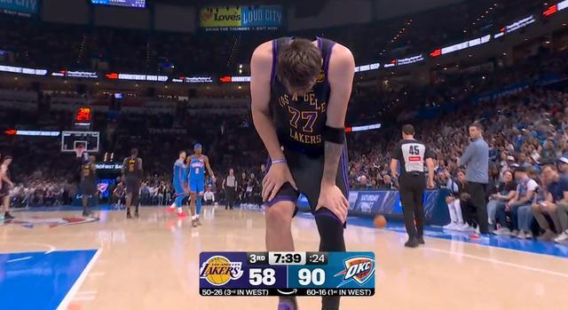 NBA的比赛就是这么有戏剧性,湖人在度过了梦幻的三月赛程之后,四月份的第一场比赛,他们就被雷霆打回了原形。比起惨败,对湖人更惨痛的是,东契奇还受伤了。