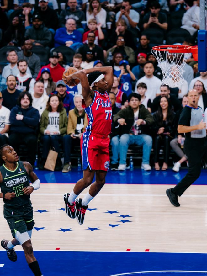 76人队的乔治得到23分、6个篮板和6次助攻,马克西得到21分、6个篮板和8次助攻,乌布雷得到21分和5个篮板,恩比德得到19分、13个篮板和7次助攻,格里梅斯得到10分和4个篮板,巴洛得到7分和10个篮板。森林狼队的海兰德得到21分和5个篮板,兰德尔得到21分和7个篮板,多苏姆得到19分和5个篮板,里德得到12分和7个篮板,迪文琴佐得到11分,爱德华兹15投3中得到8分,戈贝尔得到5分和16个篮板。
