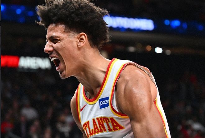 老鹰过去3场连赢国王、凯尔特人与魔术收获3连胜,篮网上一场主场86-117输给黄蜂,本赛季前三次交锋老鹰均战胜篮网。本场老鹰缺少兰代尔,篮网缺少夏普、杰明、波特、沃尔夫。首节老鹰早早开启进攻压制模式,首节老鹰22中11达到5成准星,其中三分10中6,杰伦4+5+2与麦科勒姆2记三分得到8分。篮网19中10,其中三分6中3,史密斯3中3得到9分,首节结束老鹰35-25领先篮网。