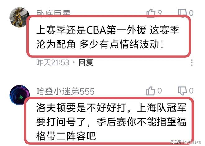 显而易见,洛夫顿并没有像外界说的那样已经“哄”好了。洛夫顿这种不职业的表现,赛后也遭球迷们吐槽。“小胖,要是不想打就下去。”;“就是在打情绪球,你之前主教练因为我进攻,你不让我打,那现在我就索性不攻了。走极端。”;“上赛季还是CBA第一外援 这赛季沦为配角 多少有点情绪波动!”;“洛夫顿要是不好好打,上海队冠军要打问号了,季后赛你不能指望福格带二阵容吧”;“洛夫顿摆烂了,冠军有悬念了!”……