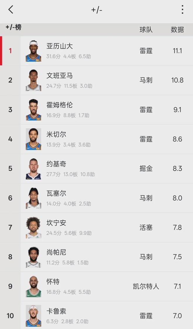 这是NBA官网的MVP排名,每周更新一期,根据球员过去一周的表现进行调整。常规赛MVP由100位体育媒体人投票选出,每位投票者要选出5名球员,按照第一位至第五位选票排序,选票分值依次为:10分、7分、5分、3分和1分。