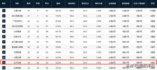 新赛季至今,辽宁男篮的战绩为18胜16负,排在积分榜第十一位,过去10场比赛,取得4胜4负的战绩,其中爆冷不敌广州,吉林等球队引发不少争议。赵继伟状态持续不佳,哈维未能完全填补外线火力的不足。