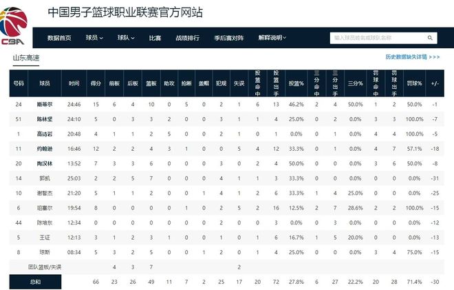 山东男篮在和宁波男篮的比赛中的表现非常糟糕,完全被对手打崩了,最终以66-96的比分惨败给了对手。这也是宁波男篮进入CBA后,队史首次战胜了山东男篮。这场比赛山东男篮的进攻效率非常低,整体只有72投20中,命中率只有可怜的27.8%。在三分球方面,山东男篮也只有27中6。就这样的进攻表现,山东男篮几乎是不可能赢任何球队的。对于这场比赛,邱彪赛后也表示感觉丢人。
