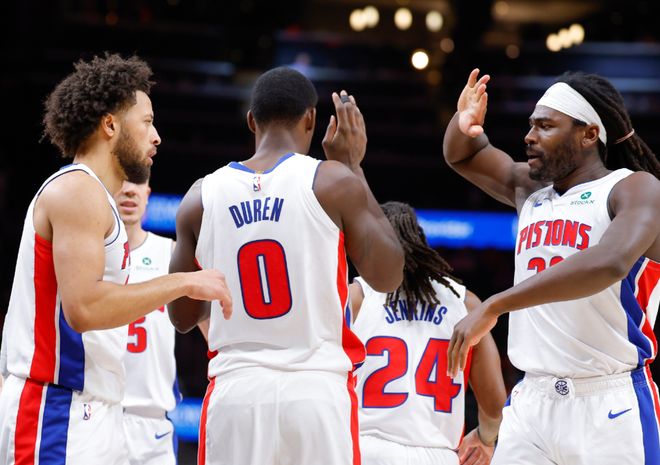 首先,活塞这支球队风格特别明显,场均控制失分109.6分联盟第三,球队防守效率109.6联盟第二,SRS值7.33联盟第三,典型的防守大队,锋线配置了奥萨尔汤普森+贾旺特格林+哈里斯,核心康宁汉姆也能去错位防对手侧翼,球队韧劲十足、对抗凶狠、防守侵略性极强!列举三个数据就明白了,本赛季活塞场均逼迫对手出现17次失误,联盟第一;限制对手场均只有23.5次助攻,联盟第一;限制对手三分球命中率34.5%,还是联盟第一!就在半个月前,球队老大康宁汉姆被诊断气胸。最近一次复查显示,至少还要缺阵一周。