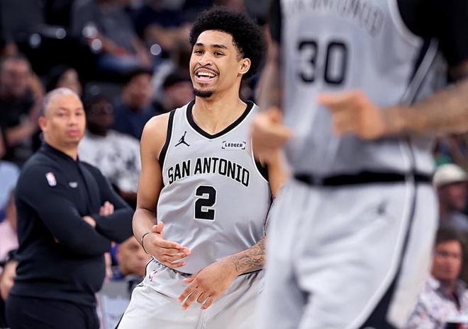 本场比赛中,马刺虽然输掉了比赛,但是球队的替补后场新秀迪伦-哈珀(Dylan Harper)的表现还是相当不错的。哈珀全场出场20分12秒,投篮7中5,三分线外3中2,罚球1中0,得到了12分3篮板3助攻的数据,还有2次失误和3次犯规,正负值为-1。哈珀在进攻端展现出了自己全面的得分能力,他其实并没有得到太多的出场时间和出手机会,但是他还是抓住了机会得到了不少分数,展现出了自己全面的个人能力。哈珀在传球和组织方面也是能够起到一些作用的,在防守端其实也没有什么太大的问题。哈珀在本场比赛中也是很好地扮演了超级第六人的角色,可惜他的出场时间毕竟有限,他也确实是没有办法在这种情况下为球队提供更多的支持了。