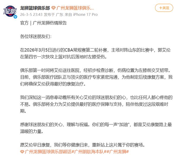 2026年,对于郭艾伦来说太不友好了,要知道过去三月份他才遭遇了前交叉韧带断裂赛季报销,现在经济方面又损失巨大。