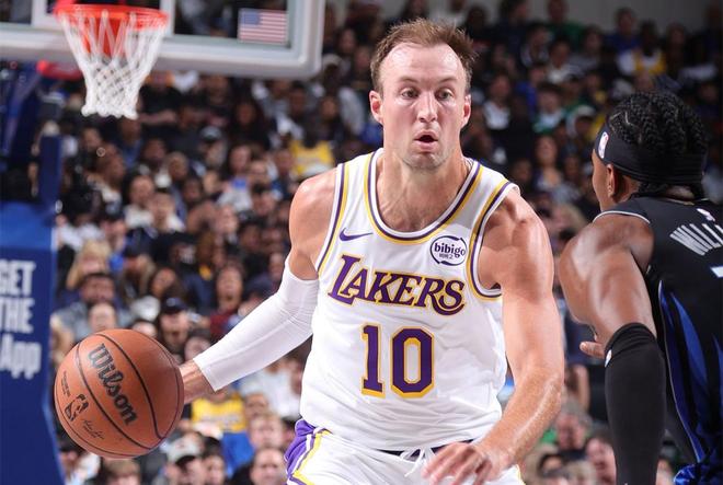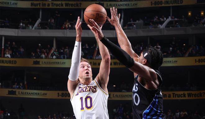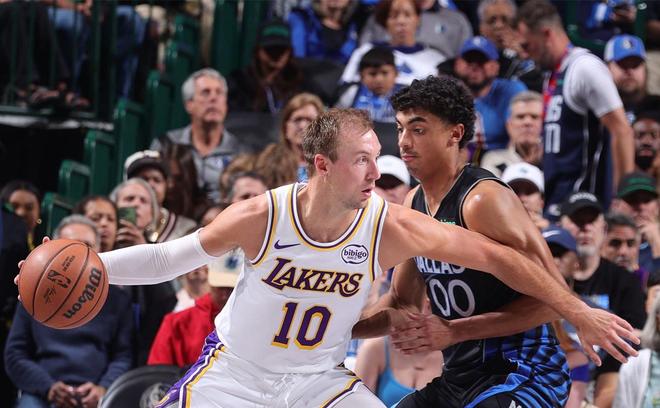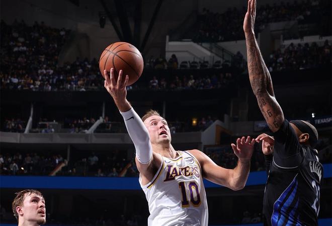 缺少东契奇、里夫斯和斯玛特三位主力球员的湖人以128比134不敌独行侠。41岁的詹姆斯尽力了,他打出了30分9篮板15助攻1抢断的准三双。这一战,29岁的后卫肯纳德成为湖人的一个惊喜,他打出了15分16篮板11助攻的三双,正负值+8为全队最高。
