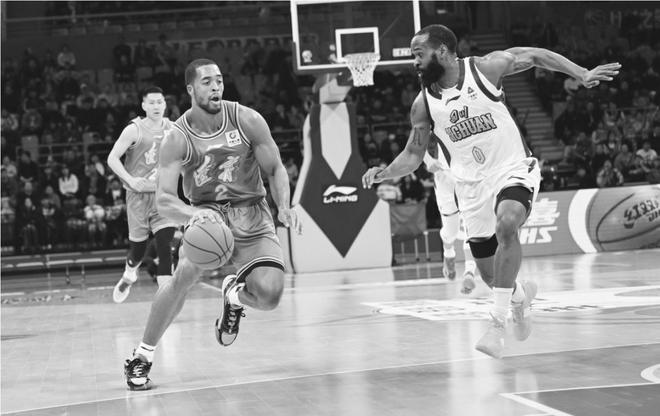 辽篮球员莱迪(左二)在比赛中发起进攻。 本报记者 孙海涛 摄