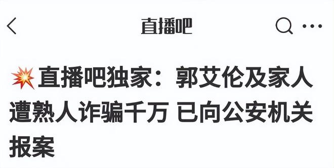 不过就在日前,国内媒体直播吧突然爆出猛料,表示郭艾伦及其家人在近日遭遇了一起数额较大的诈骗案,涉案金额接近千万元人民币,目前已经报警。该消息立刻引发了媒体和球迷的关注,“郭艾伦被诈骗近千万”词条已登上热搜,目前排在至第2位。据悉郭艾伦及其家人此次受骗,嫌疑人系郭艾伦身边好友,以“投资入股”为名诱导其转账近千万元。转账后,该嫌疑人一度失联,资金去向不明。对此不少媒体人都发声,表示郭艾伦是球痴,性格上也比较相信朋友,这次又是熟人作案,让郭艾伦防不胜防。
