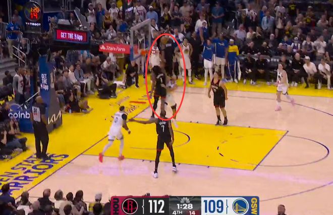 第二次漏判发生在距离比赛结束还剩1分10秒时,报告指出,火箭球员申京在禁区内停留超过三秒,这是一次漏吹的进攻三秒违例。申京随后命中一记抛投,还是一次2+1。而如果裁判正确响哨,申京拿下的这3分本该无效。显然,这次漏判还是勇士吃亏,火箭获利。