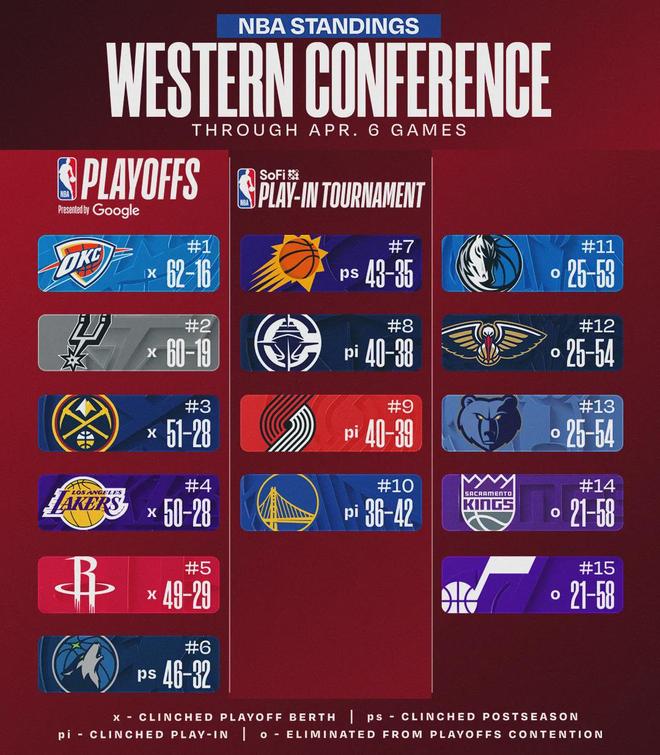 北京时间4月7日,开拓者客场132-137不敌掘金。此役过后,开拓者40胜39负西部第9,落后第8快船0.5个胜场,领先第10勇士3.5个胜场。开拓者还剩3场比赛:马刺、快船和国王。快船还剩4场比赛:独行侠、雷霆、开拓者和勇士。