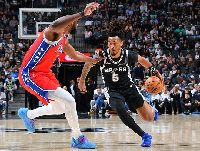 文班因伤只打了15分钟,11中7(三分3中1)得到17分5板1助3帽、卡斯尔13中6(三分2中1)得到19分10板13助2断、哈珀11中7(三分3中3)得到17分3板4助。76人方面恩比德19中8(三分6中2)得到34分12板4帽、乔治15中5(三分5中4)得到16分5板4助2断、马克西16中6得到15分3板8助。