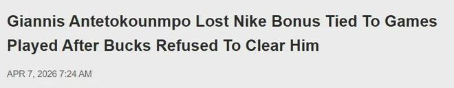 值得一提的是,因为本赛季出战次数不满41场,导致字母哥损失了耐克巨额奖金。