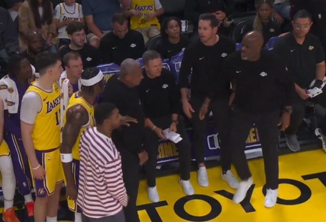 湖人这边蒂米手感不错,联合艾顿一路咬住比分。中段雷霆这边米切尔和亚历山大下起三分雨,伊塞亚乔也续上外线火力,不过蒂耶罗和范德比尔特也在外线回应!节末伊塞亚乔连中两记三分,第一节湖人27-34落后雷霆。进入第二节,湖人突发意外,范德比尔特被换下后,和雷迪克直接吵起来了,雷迪克看起来非常激动,而范德比尔特也寸土不让,试图上去理论,幸好被里夫斯和助教给拉走了!不怪雷迪克生气,范德比尔特第一节节末三罚不中,换谁不生气?八村塁快攻上篮+急停跳投,随后再中三分带队追平!