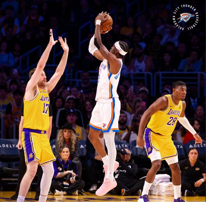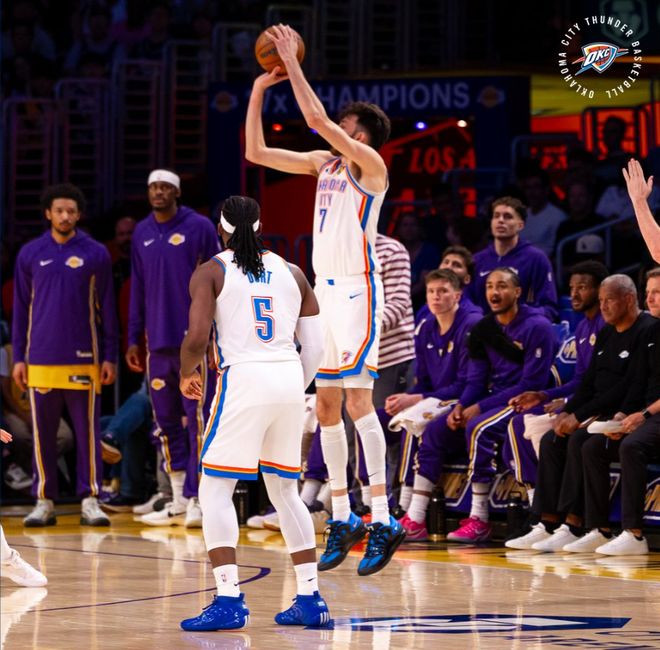 末节开场雷霆的第三阵容托皮奇、威金斯、麦凯恩、肯里奇、杰林打出一波10-0,比赛已经完全失去了悬念。SGA三节25分8助攻打卡, 霍姆格伦15分10篮板2抢断2盖帽打卡下班了。湖人这边垃圾时间范德比尔特都没有再度登场,看起来这支湖人更衣室的矛盾已经凸显,不知道东契奇、里夫斯回归后湖人还在季后赛中存活否。