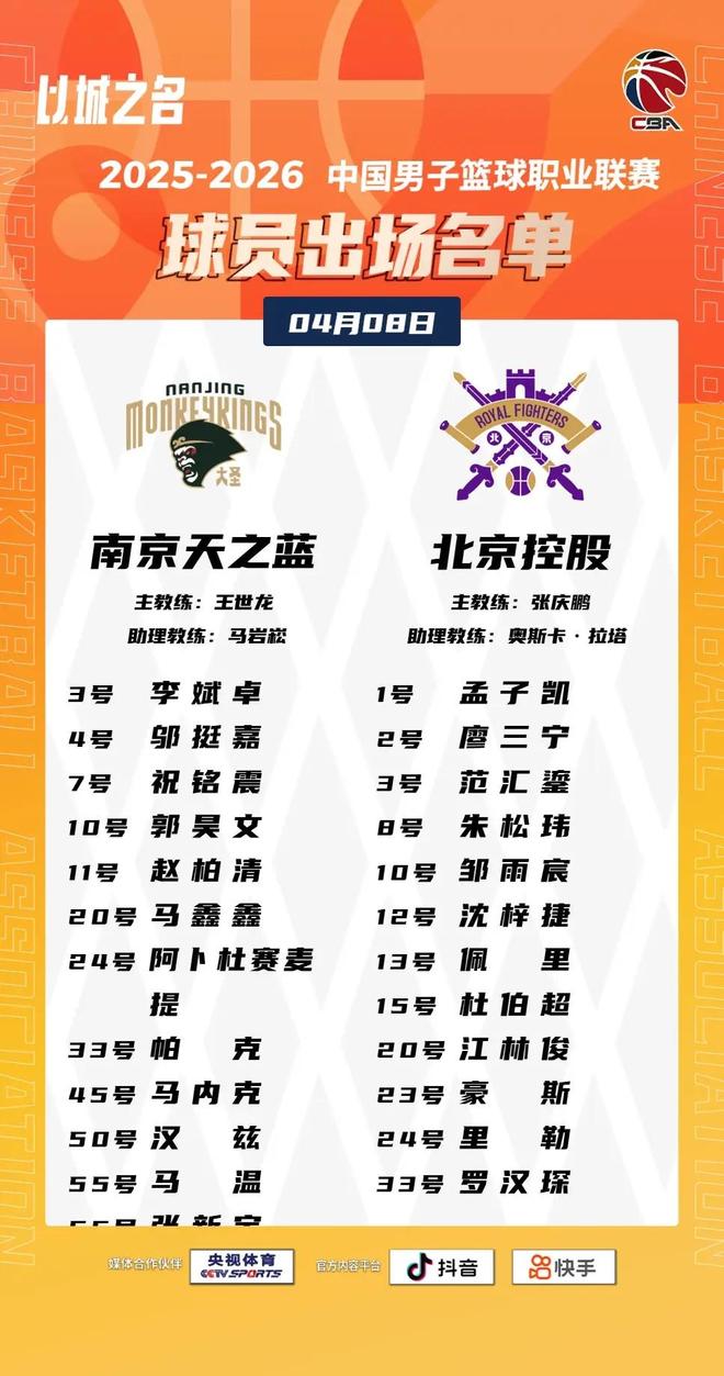 根据官方比赛名单,J.Cole依旧无缘本场比赛,南京队此前的四名外援则悉数出战。