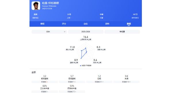 得益于丰富的NBA比赛经验,以及极其出色的静动态天赋,尽管怀特塞德已步入老将行列,但在CBA仍具备碾压级优势。