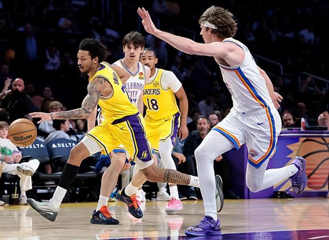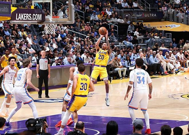 本场比赛中,湖人虽然遭遇了一场惨败,但是的双向合同替补后场新星小尼克-史密斯(Nick Smith Jr.)的表现其实还是具备一定的亮点的。史密斯全场出场12分钟,投篮6中4,三分线外2中1,罚球2中2,得到了11分2助攻的数据,还有1次犯规,正负值为-5。史密斯在进攻端展现出了比较全面的得分能力,他也是在出场时间有限且出手次数不多的情况下得到了不少的分数,展现出了自己在进攻端的实力和特点。在全队表现不佳的情况下,史密斯也算是球队在进攻端为数不多的亮点了。史密斯在其他方面的表现确实是比较一般的,防守能力也确实是不太理想的,但是至少在本场比赛中,他还是在进攻端发挥出了一些特点。能够在这种情况下做到这一点,这也是一件不太容易的事情。