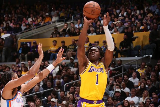 本场比赛中,湖人虽然遭遇了一场惨败,但是球队的替补侧翼新秀阿杜-蒂罗(Adou Thiero)的表现还是相当不错。蒂罗全场出场20分39秒,投篮4中2,三分线外2中1,罚球10中5,得到了10分4篮板2助攻1抢断的数据,还有2次失误,正负值为-15。蒂罗在进攻端展现出了很强的冲击力和爆发力,得到了不少分数。不仅如此,他也命中了一记三分,起到了一定的效果。如果他的罚球能力能够更加出色一些,那么他也有机会得到更多的分数。蒂罗在防守端其实也是具备一定的实力的,他也是有能力在防守端发挥出一定的作用,他也能够利用自己在身体天赋和运动能力方面的优势给对手制造一定的威胁的。至少在本场比赛中,蒂罗也是发挥出自己的特点了,他的表现也是具备一定的亮点的。
