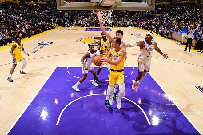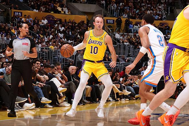 本场比赛中,湖人的先发控卫卢克-肯纳德(Luke Kennard)的表现也算是尽力了。肯纳德全场出场23分10秒,投篮7中4,三分线外2中0,罚球3中2,得到了10分2篮板9助攻1抢断的数据,正负值为-23。肯纳德在进攻端虽然没有命中外线投篮,但也是展现出了不俗的得分能力并且得到了不少分数,起到了一定的作用。不仅如此,肯纳德在传球和组织方面也是展现出了不俗的实力。肯纳德毕竟不是防守能力出色的球员,他也没有办法在这种情况下在防守端起到更大的作用了。肯纳德在本场比赛中也算是尽力了,也算是在进攻端起到了很好的效果了。只是球队其他球员的表现确实是差了一些,球队的整体实力也是比对手差了很多的,这种情况下肯纳德也是很难起到更大的作用了。