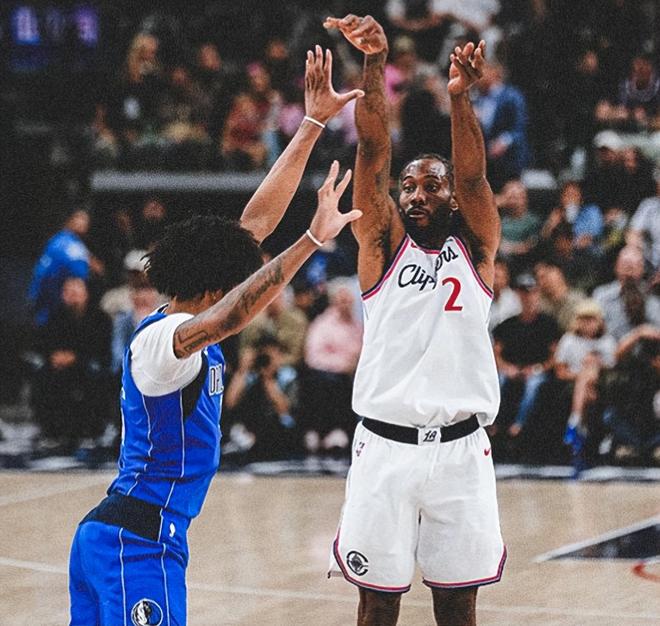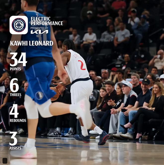 对阵独行侠一战,科怀-伦纳德30分钟打卡(三节)19中11,三分10中6,罚球9中6,拿到34分4篮板3助攻1抢断,命中率57.9%,三分命中率60%。他连续55场比赛完成20+继续刷新快船队史纪录。