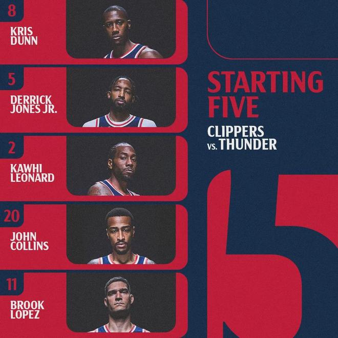 快船本场首发:邓恩、小德里克-琼斯、伦纳德、科林斯、大洛佩斯。雷霆首发:亚历山大、多尔特、杰伦-威廉姆斯、切特-霍姆格伦、哈尔滕施泰因。雷霆开局压迫性十足,包夹快船持球人,雷霆打出一波19-9很快拉开到两位数。