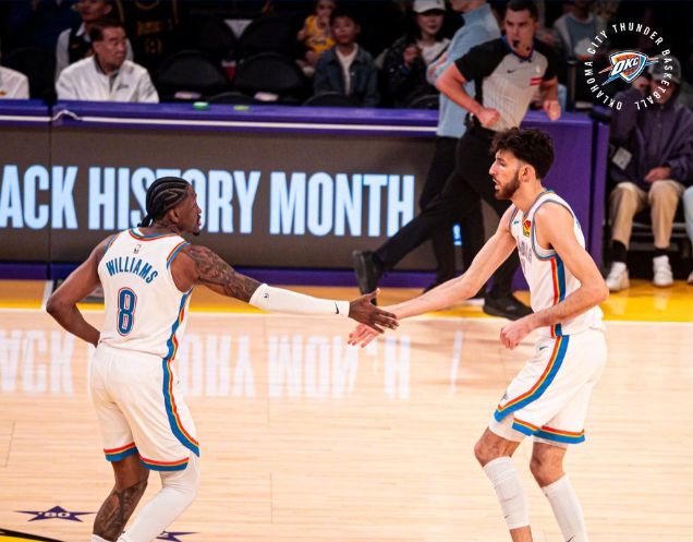 卫冕冠军雷霆在二当家杰伦威廉姆斯本赛季伤病不断的情况下,在MVP亚历山大的率领下,依旧打出了极具统治力的表现,在上一场常规赛以36分的优势血洗洛杉矶湖人之后,已经取得了一波六连胜,在西部积分榜上领跑。