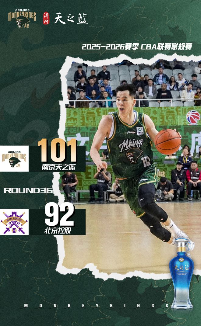 末节决战,柏清禁区线先声夺人,马内克跟进快攻,郭昊文抛投自投自抢,球队将分差追至只差1分,北控队暂停调整。郭昊文三分迎射,赵柏清禁区自投自抢。里勒、郭昊文两罚两中,马内克接郭昊文助攻禁区再打2+1,祝铭震底角三分手起刀落。佩里三分开火,孟子凯压哨放篮,球队暂停调整。帕克机敏抢断,郭昊文三分中的,帕克二次进攻补篮。廖三宁两罚中一,里勒变向上篮。祝铭震底角三分再中,廖三宁反击上篮,阿卜杜赛麦提两罚中一,全场比赛结束,南京天之蓝101-92北京控股。