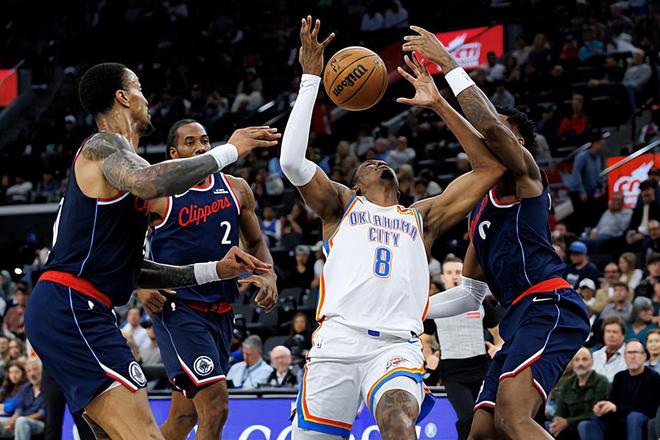 在此前的一场NBA常规赛中,俄克拉荷马城雷霆以128比110轻取了主场作战的洛杉矶快船。本场比赛后,豪取7连胜的雷霆的战绩提升到了64胜16负,继续排名西部榜首位置,并且已经成功锁定西部第一了,与身后的圣安东尼奥马刺的胜场差为3场;而在最近4场比赛中输掉了3场的快船的战绩则是下滑到了41胜39负,继续排名西部第8位,与身前的菲尼克斯太阳的胜场差为3场,与身后的波特兰开拓者的胜场差为1场。