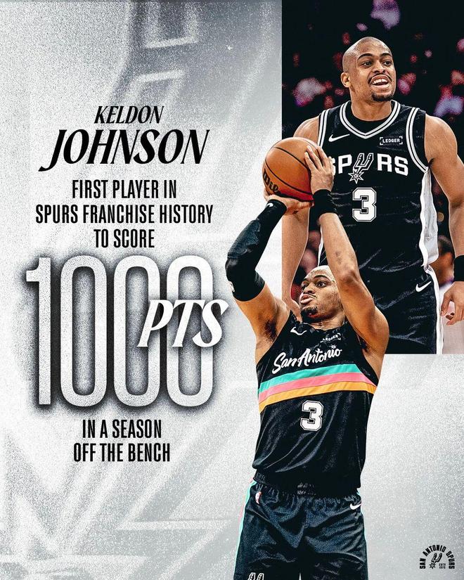 同样这场比赛,马刺队魂、替补核心凯尔登约翰逊的表现也必须值得称赞。