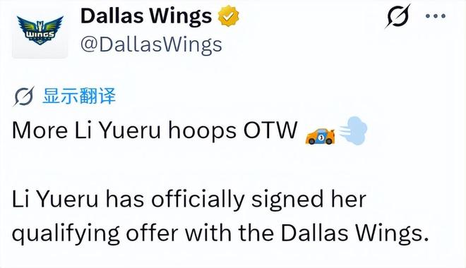 北京时间4月9日,WNBA球队达拉斯飞翼队官方宣布,中锋李月汝与后卫格蕾丝-伯杰已接受资质报价,新赛季将重返球队。