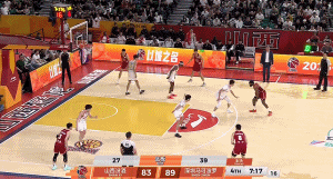 之后进入山西男篮的进攻回合,卢鹏羽在罚球线站位联防的情况下张宁直接冲了过来将卢鹏羽撞翻倒地。