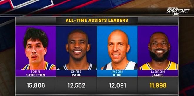 凭借这样的表现,詹姆斯生涯总助攻数来到11998次,距离12000次大关仅差2次,有望成为NBA历史上第四位达成这一壮举的球员,前三位是斯托克顿(15806次)、保罗(12552次)和基德(12091次)。