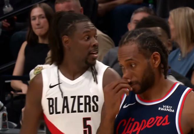 这场跟快船的比赛,开拓者在第二节拉开分差,克林根以及罗威连中三分,开拓者曾领先20分。快船没有崩盘,逐渐追分,前两节结束时,开拓者61-51快船,杨瀚森没有得到出场机会。