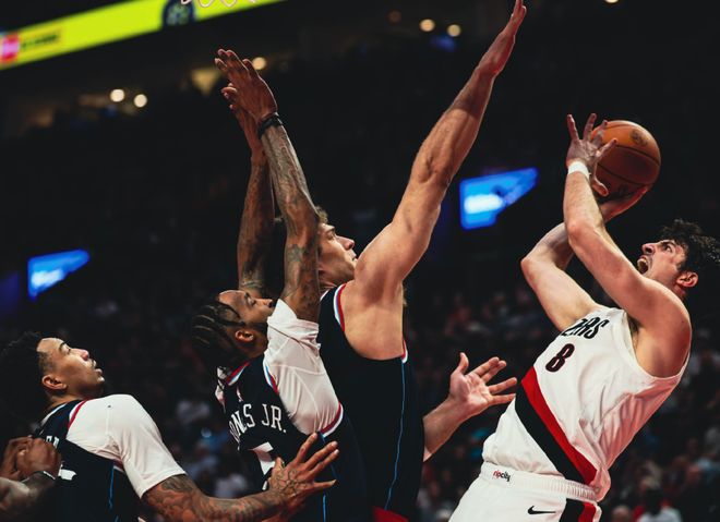 中段阿夫迪亚连续强攻,伦纳德单打回应,配合加兰三分球稳定节奏。但后半段快船哑火,克林根制霸篮下,阿夫迪亚弹无虚发,快船这边根本没人得分,开拓者前后打出19-5的高潮,第一节结束时,快船24-33落后。进入第二节,夏普续上三分,霍勒迪单吃科林斯,甚至罗威都开始扔三分球,快船已经落后16分!暂停回来,罗威续上三分,加兰和米勒单打回应,但阿夫迪亚继续强攻,克林根轰三分,开拓者最多领先20分!米勒三分止血后,大洛完成补篮,后半大洛联合邓恩下三分雨!