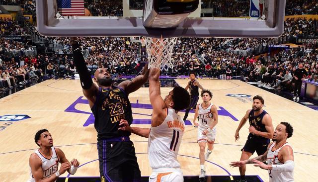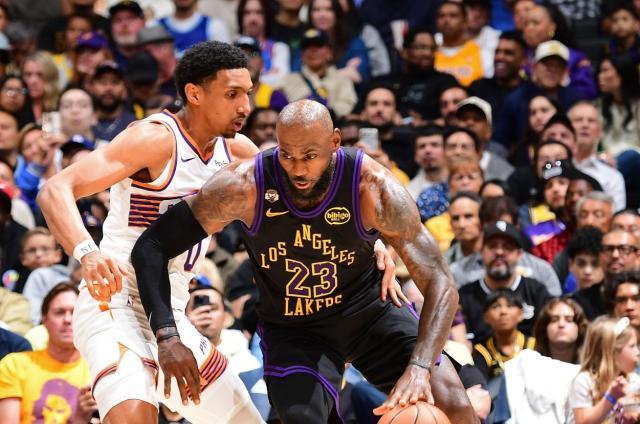 湖人在4月10日顺利击败缺少库里的勇士。詹姆斯在比赛中遭遇手指挫伤,但是在接受冰敷之后继续出战。4月11日对阵太阳队,詹姆斯身先士卒,他在第一节就火力全开,4投全中,三分球2中2,罚球5中4,砍下14分1篮板5助攻1抢断0失误。在詹姆斯的率领下,湖人首节打出33比24。湖人其他球员肯纳德、八村垒、艾顿以及复出的斯玛特都纷纷发威,最终取得了一场大胜。