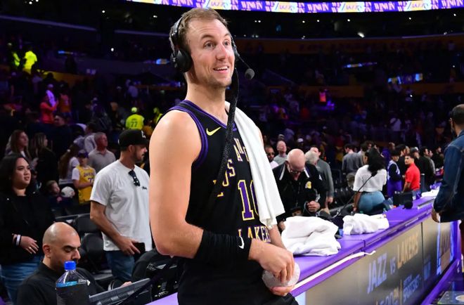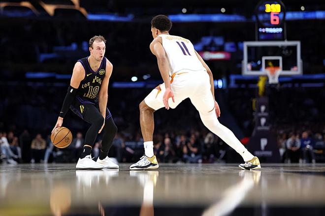 本场比赛中,湖人的先发控卫卢克-肯纳德(Luke Kennard)的表现依然是相当不错的,他也是保持了自己在最近一段时间的出色状态。肯纳德全场出场28分12秒,投篮12中6,三分线外4中2,罚球5中5,得到了19分1篮板3助攻3抢断的数据,还有1次失误,正负值为+14。肯纳德在进攻端还是展现出了自己出色的得分能力和投射能力,他在中远距离投篮方面的稳定性也是非常突出的,他也证明了自己远不是一名三分投手。除此之外,肯纳德也是在防守端起到了相当不错的效果,证明了自己是一名非常优秀的防守者。肯纳德在本场比赛中的表现确实是非常出色的,展现出了自己全面的个人能力,这也为球队的这场大胜做出了不小的贡献。