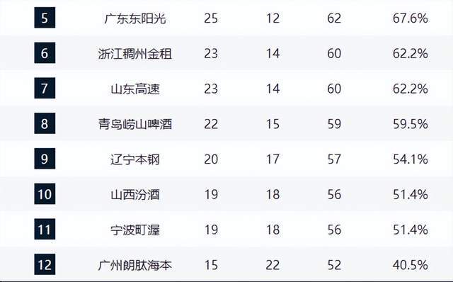 第九至十一名席位竞争白热化。辽宁本钢在与青岛的卡位战中鏖战双加时,终因关键球处理失误惜败,错失提升排名良机;山西汾酒与宁波富邦同为15胜19负,但宁波已遭遇三连败,士气低迷;山西队近期防守端漏洞频出,多名主力状态低迷,亟需调整阵容与战术节奏,否则恐被后续球队反超。