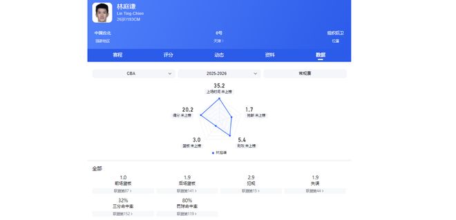 本赛季36次出场后,他场均可砍20.2分5.4助攻3篮板,该数据要比绝大多数当红国手还亮眼。林庭谦目前D类合同在身,合同今夏到期。