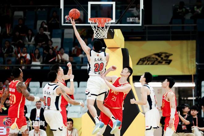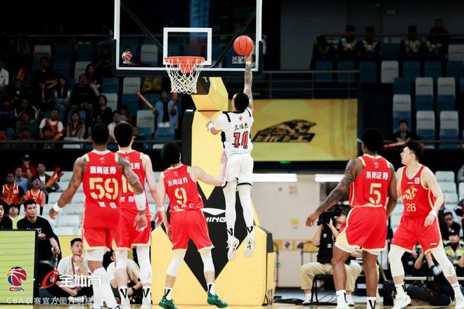 次节上来,场上对抗依旧激烈,面对对手的顽强追赶,奎因外线发炮并助攻挡拆顺下的王少杰单臂隔扣桑普森,徐杰更在0.7秒内自投自抢补篮命中,帮助球队守住领先优势。尽管广厦队在经过暂停调整后利用转换进攻追近比分,但广东队并未因此慌乱,而是迅速找回攻防节奏,崔永熙和麦考尔凭借灵动的脚步接连突破得手、奎因外线手起刀落,率队强势轰出一波13-4将分差扩至两位数。半场战罢,广东队以51-40领先。