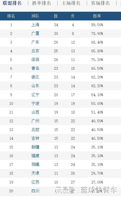 附:CBA积分榜最新排名