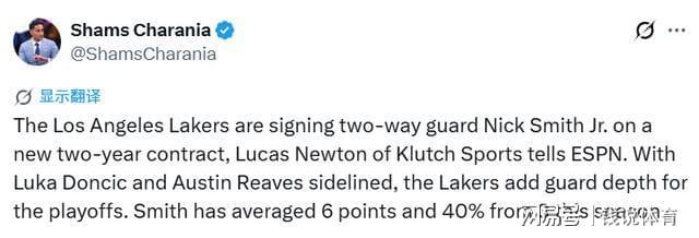 此次签约,是为了填补此前裁掉巴夫金后留下的空缺,同时也是因为东契奇与里夫斯缺阵,湖人急需补充后卫深度,小尼克-史密斯也因此成为球队季后赛15人大名单的最后一人。